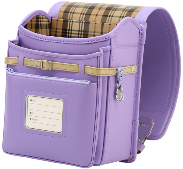 岐阜横山鞄のランドセルです。品番m4ir-cのセレクトデザインの前段です。アイリス色の人工皮革で手作りされたランドセルです。