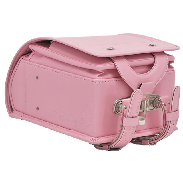 岐阜横山鞄のランドセルです。品番m5fp-fの底側です。フェアリーピンク色の人工皮革で手作りされたランドセルです。